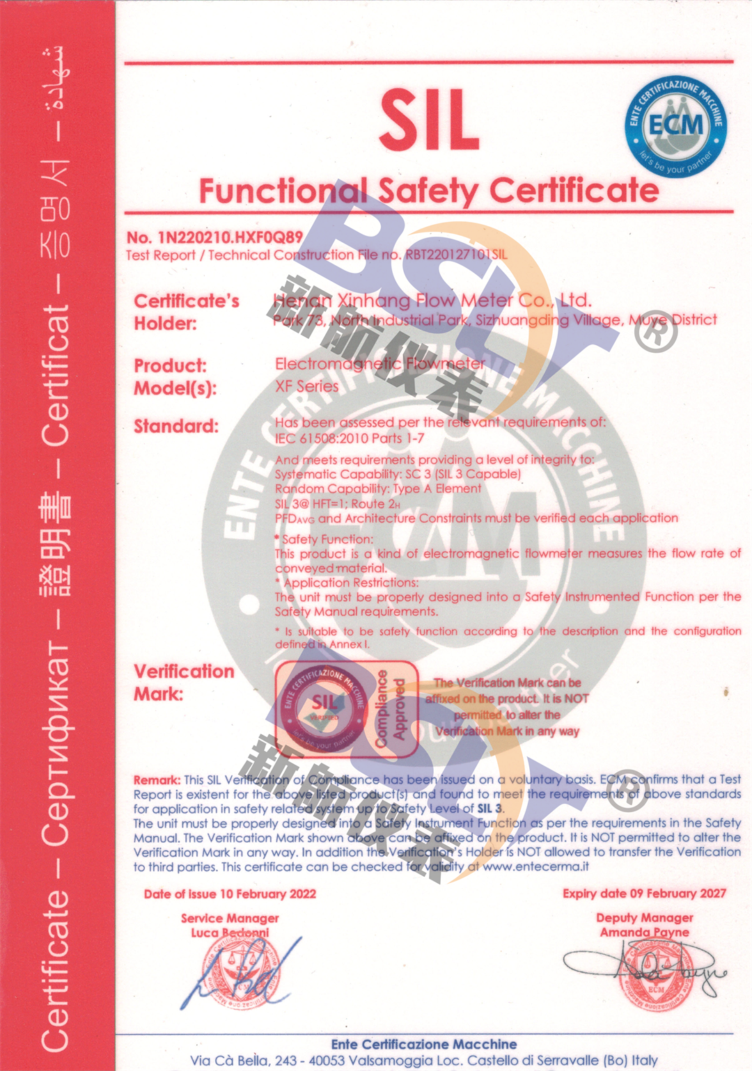 電磁流量計SIL證書1